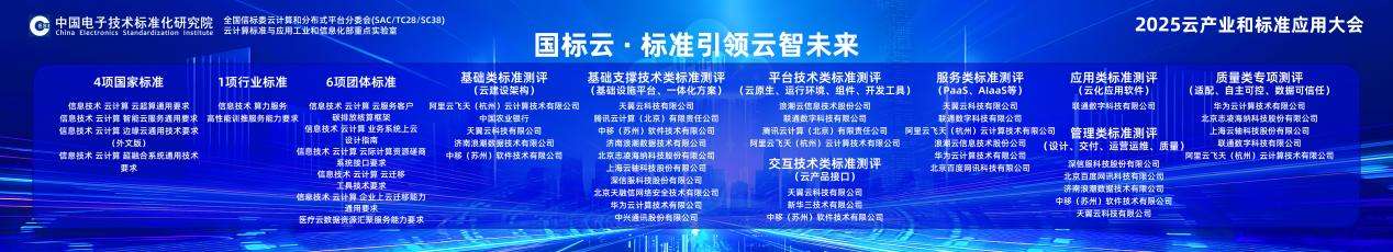 為推動云計算國家標(biāo)準(zhǔn)在產(chǎn)業(yè)中落地生根,電子標(biāo)準(zhǔn)院開展“國標(biāo)云”研制及貫標(biāo)工作,取得了豐碩成果。11項關(guān)鍵技術(shù)標(biāo)準(zhǔn)相繼制定,覆蓋超融合、云遷移、智算服務(wù)等前沿方向;40余項權(quán)威測評全面開展,涵蓋公有云彈性性能、算力服務(wù)成熟度、云解決方案等核心能力;天翼云、阿里云、華為云等30余家領(lǐng)軍單位積極參與,共同筑牢可靠、高效、智能的云底座。